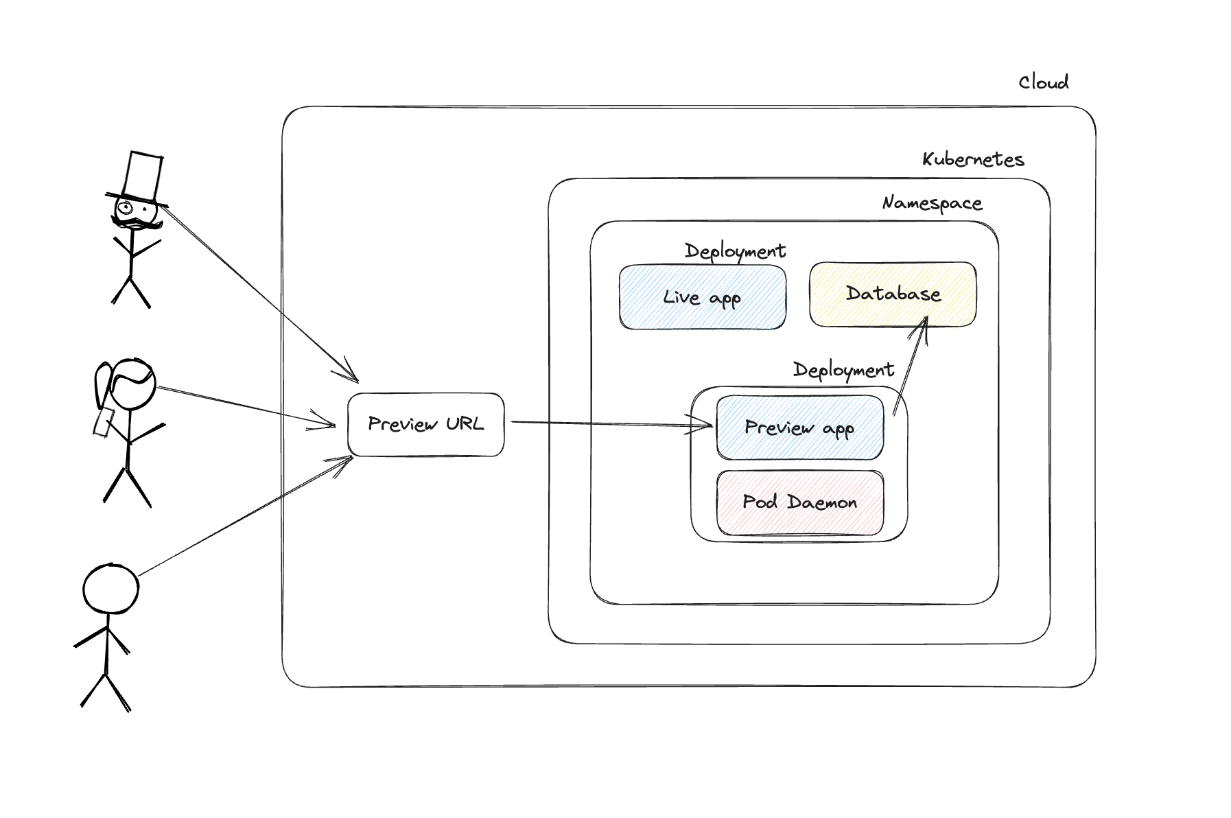 The Pod Daemon facilitates the execution of Telepresence by using a Pod as a sidecar to your application. This becomes particularly beneficial when intending to incorporate Deployment Previews into your pipeline. Essentially, the pod-daemon is a Telepresence instance running in a pod, rather than operating on a developer's laptop.